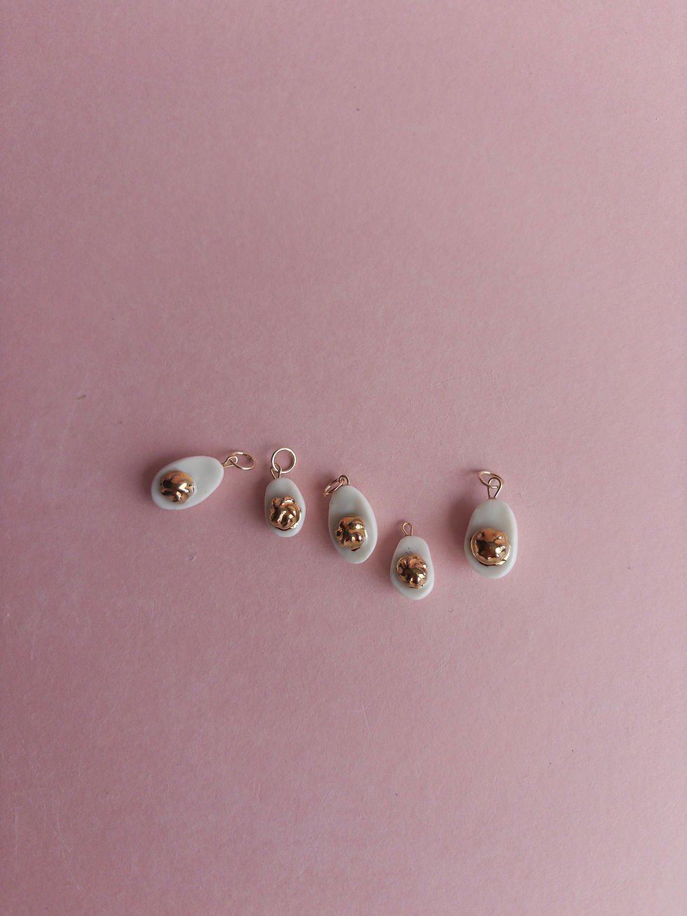 24 Karat Gold Edged Porcelain Eye Pendants - Blue